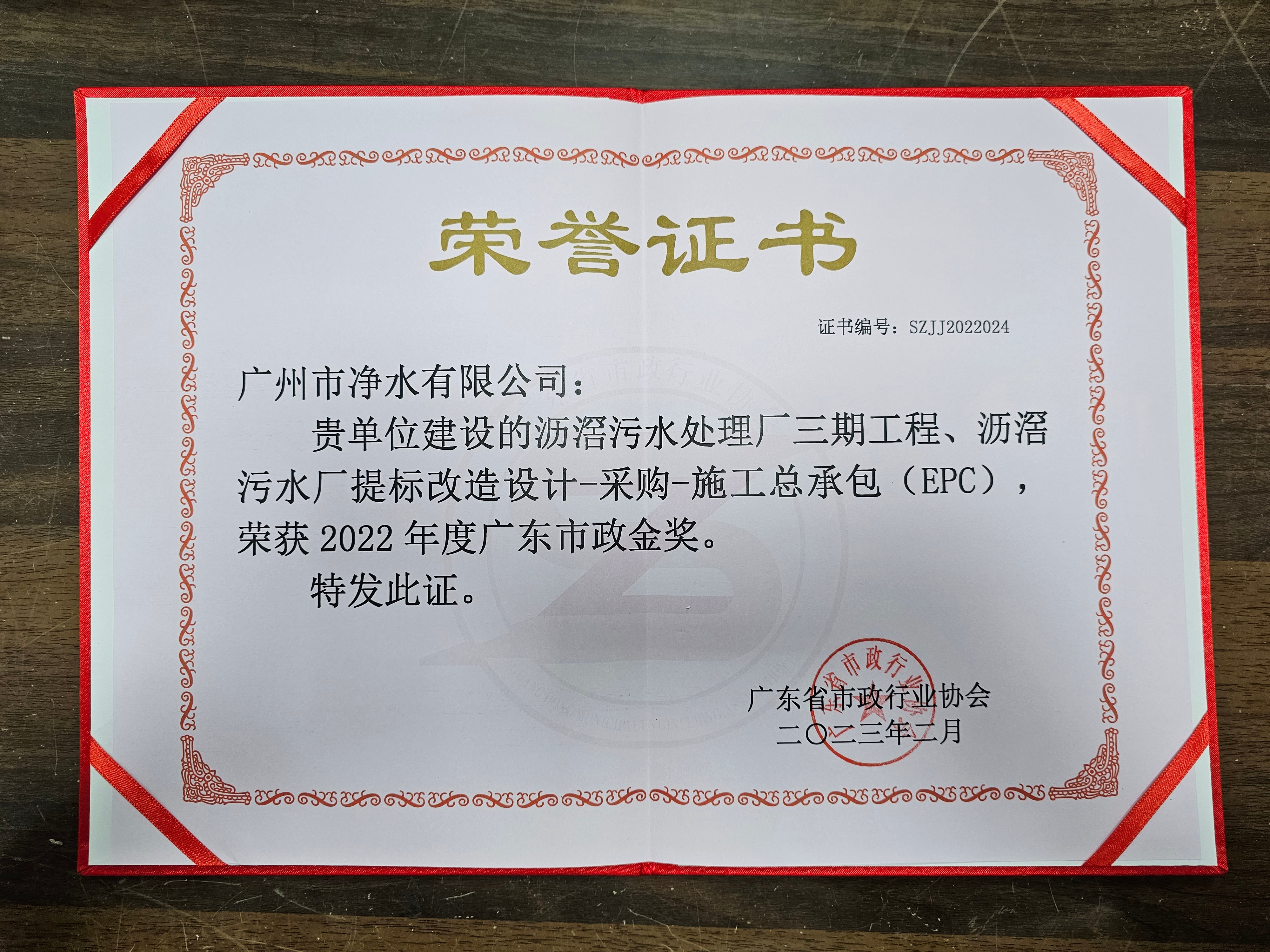 瀝滘污水處理廠三期工程、瀝滘污水廠提標(biāo)改造設(shè)計(jì)-采購-施工總承包(EPC),榮獲 2022年度廣東市政金獎(jiǎng)