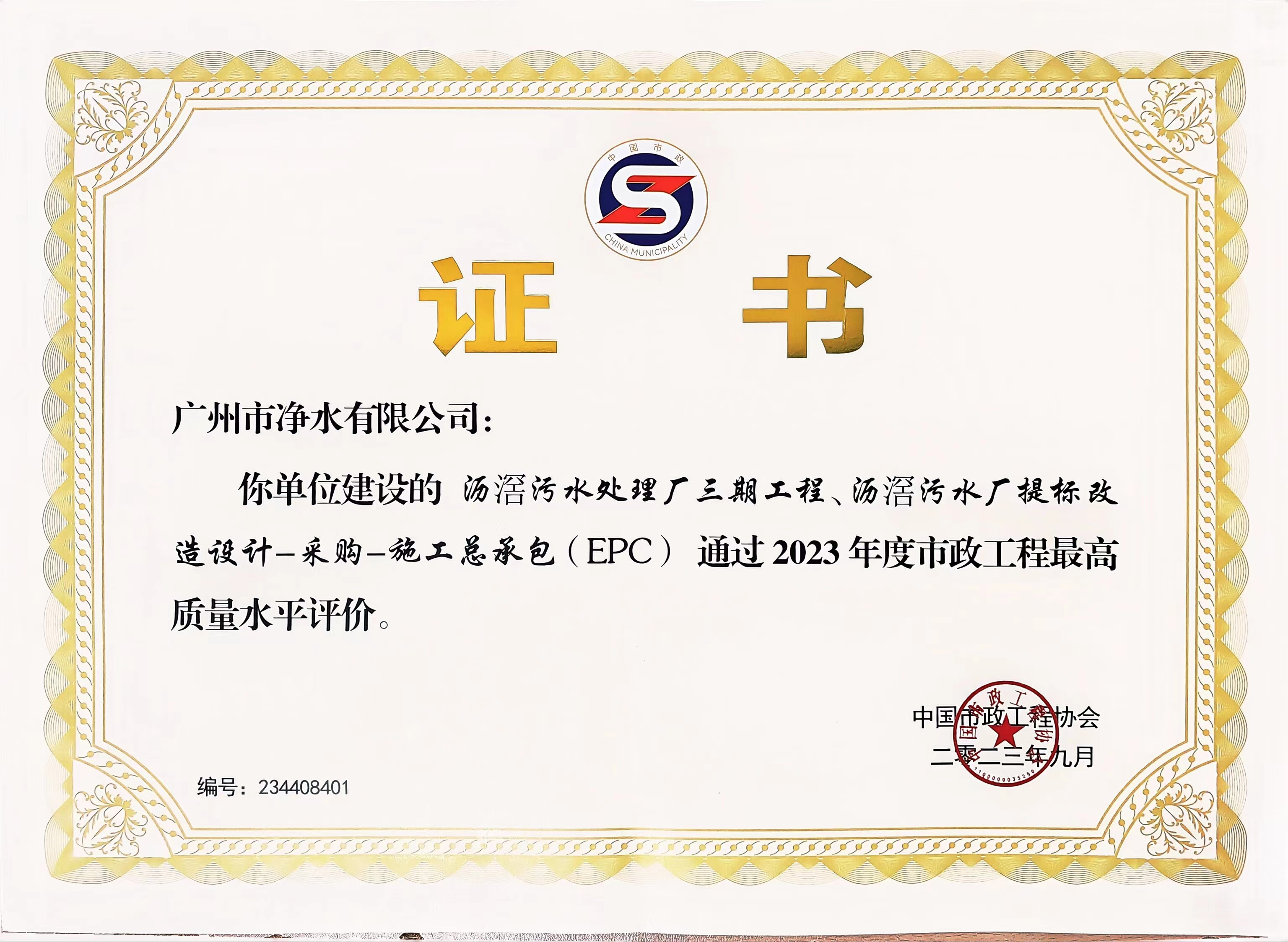 瀝滘污水處理廠三期工程、瀝滘污水廠提標(biāo)改造設(shè)計(jì)-采購-施工總承包(EPC)通過2023年度市政工程最高質(zhì)量水平評(píng)價(jià)