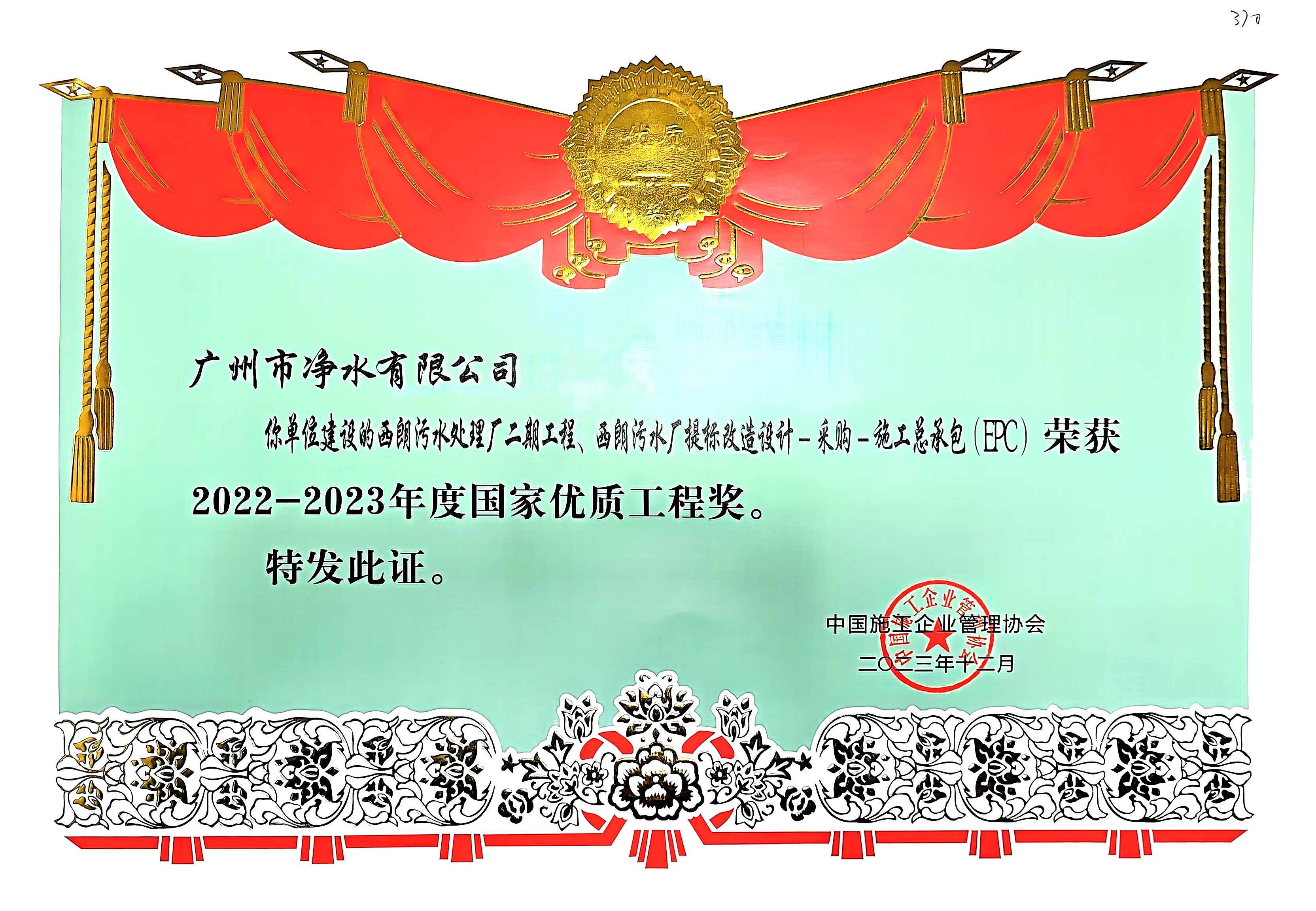 西朗污水處理廠二期工程、西朗污水廠提標(biāo)改造設(shè)計(jì)-采購-施工總承包(HPC)2022-2023年度國家優(yōu)質(zhì)工程獎(jiǎng)
