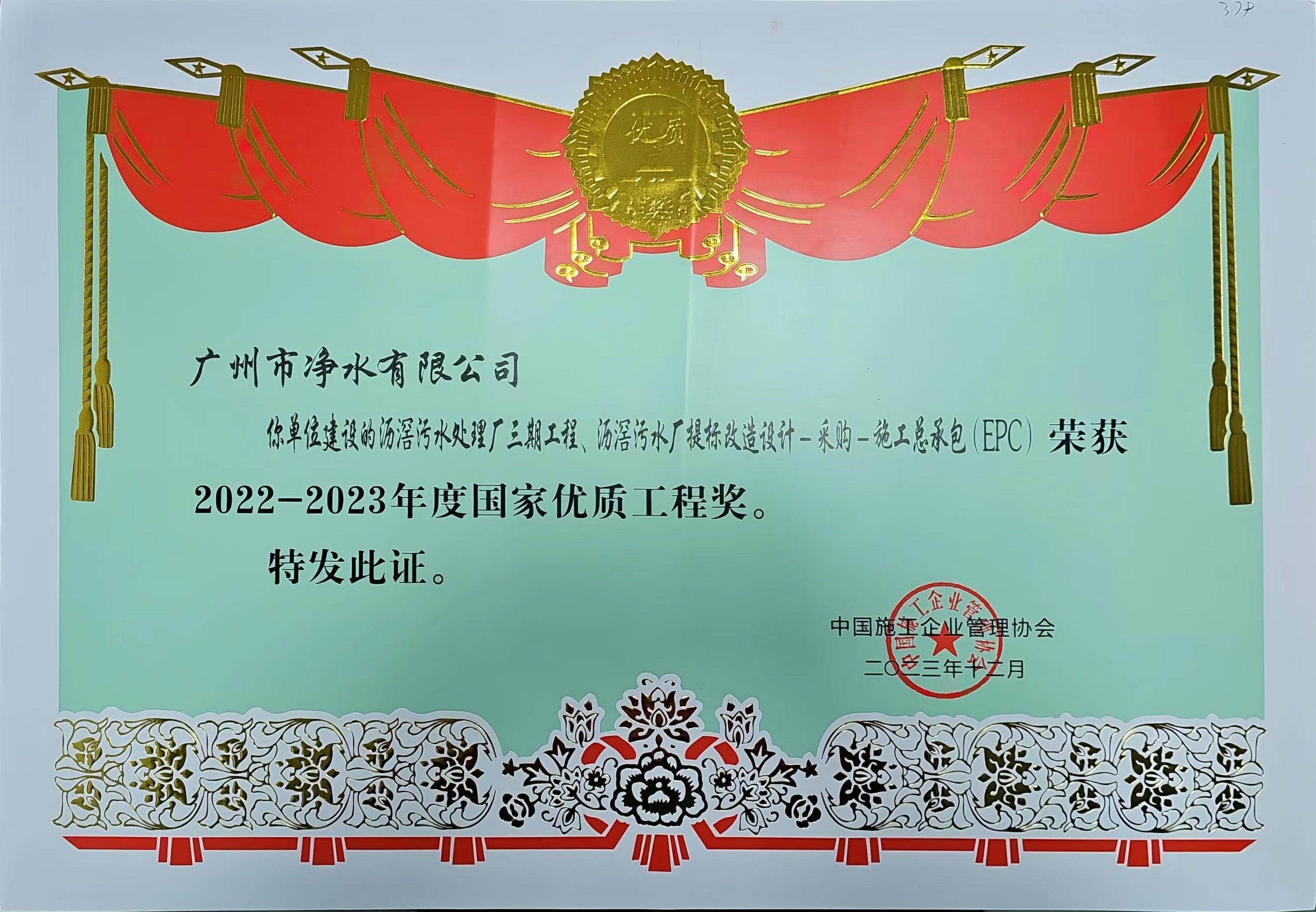 瀝滘污水處理廠三期工程、瀝滘污水廠提標(biāo)改造設(shè)計(jì)-采購-施工總承包(EPC)以2022-2023年度國家優(yōu)質(zhì)工程獎(jiǎng)