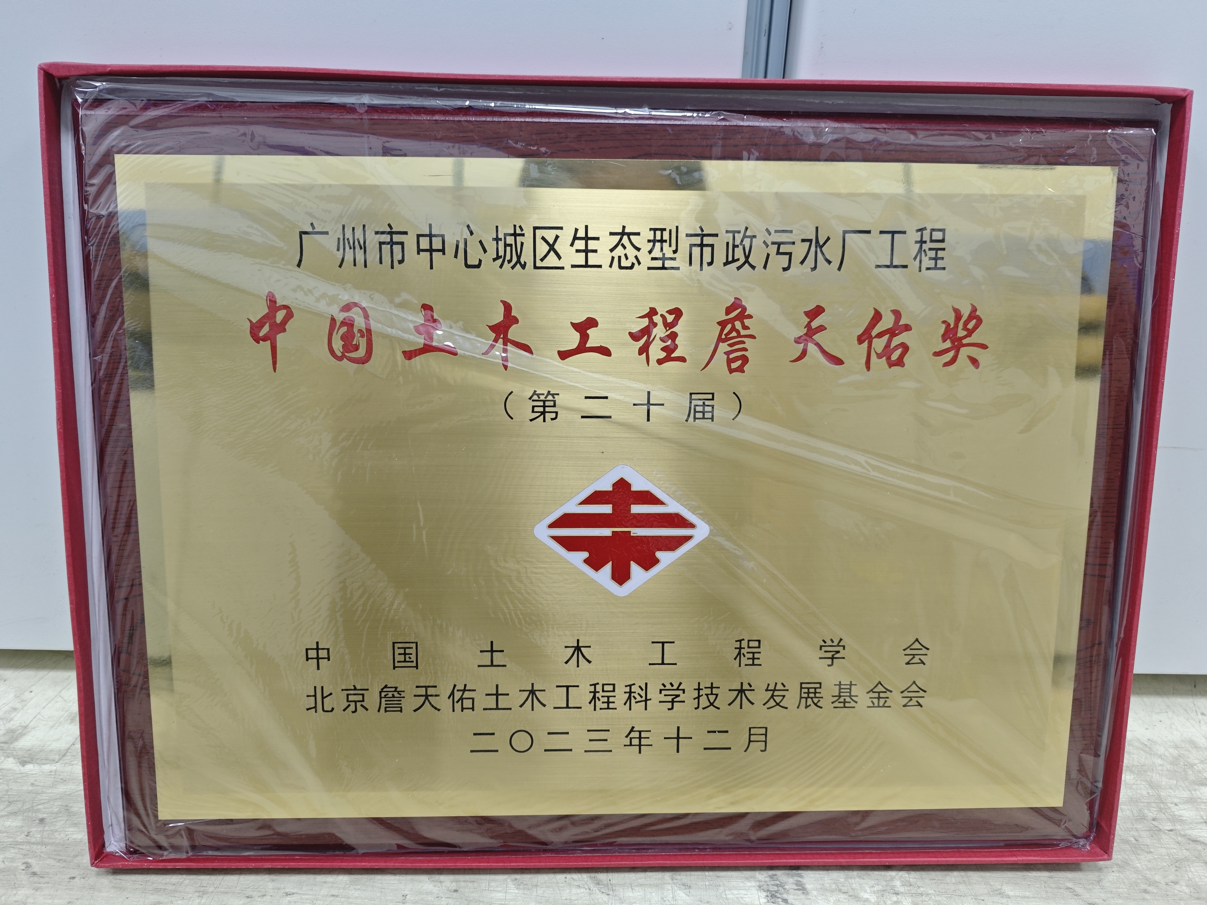 廣州市凈水有限公司廣州市中心城區(qū)生態(tài)型市政污水廠工程獲評(píng)第二十屆中國土木工程詹天佑獎(jiǎng)