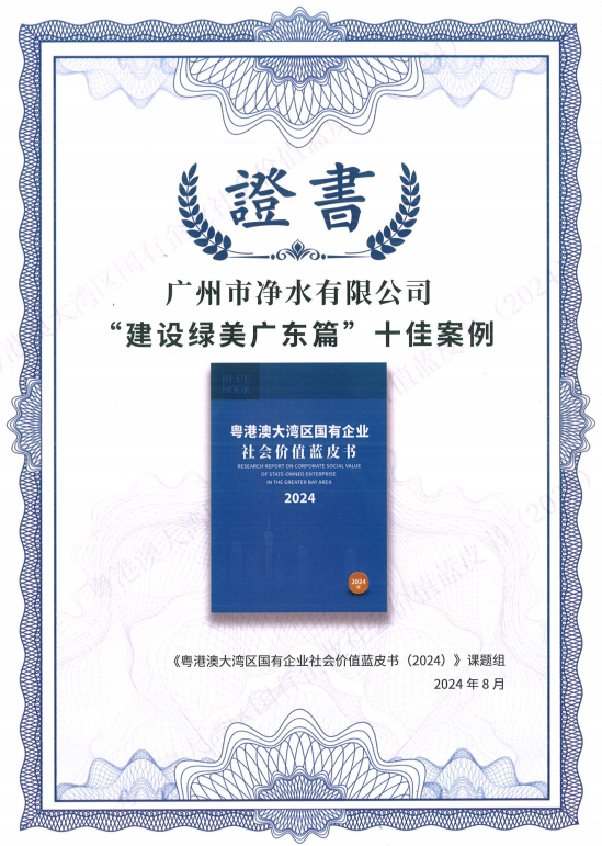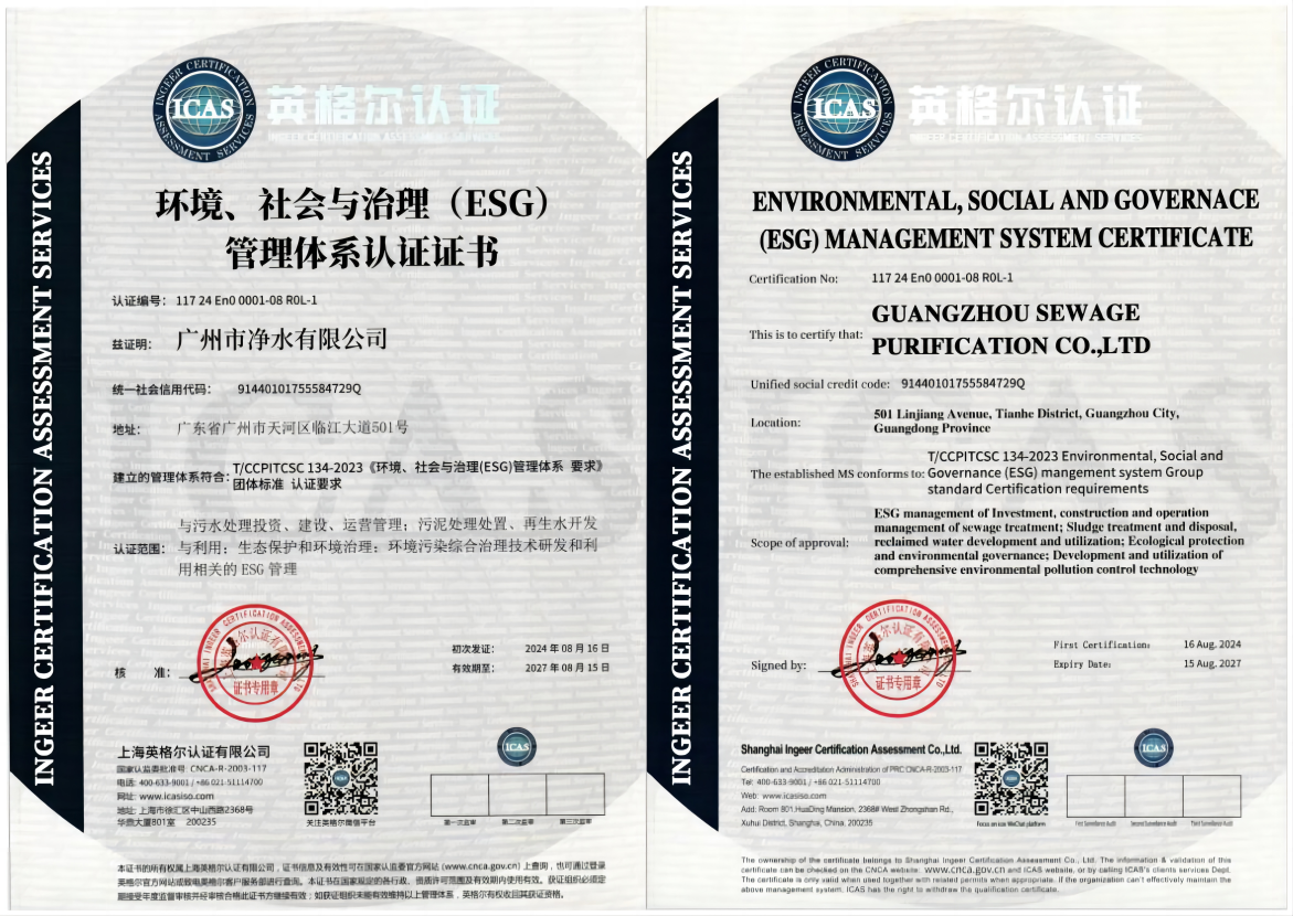 廣州市凈水有限公司已通過《通用ESG企業(yè)評(píng)價(jià)規(guī)范》評(píng)測,并授予通用ESG標(biāo)準(zhǔn)企業(yè)認(rèn)證