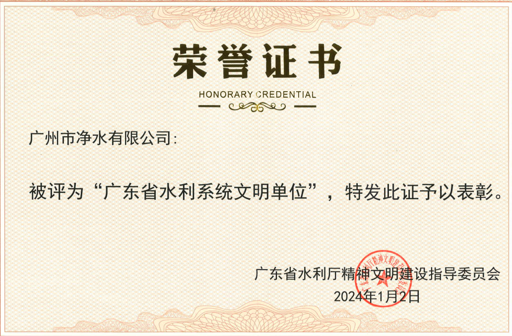 公司先后榮獲“全國減排先進(jìn)集體”、“廣東環(huán)保先進(jìn)單位”和“廣州市先進(jìn)集體”等多項(xiàng)榮譽(yù)。屬下各污水處理廠的生產(chǎn)工藝、設(shè)備及運(yùn)行管理水平較高,在國內(nèi)處于先進(jìn)水平。獵德污水處理廠、西朗污水處理廠均被評(píng)為“全國城鎮(zhèn)污水處理廠十佳運(yùn)營單位”;大坦沙污水處理廠、瀝滘污水處理廠多次被評(píng)為“全國城鎮(zhèn)污水處理廠先進(jìn)運(yùn)營單位” 。