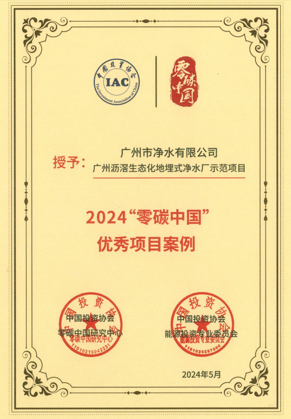 授予:廣州瀝滘生態(tài)化地埋式凈水廠 “零碳工廠” 標(biāo)準(zhǔn)試點(diǎn)